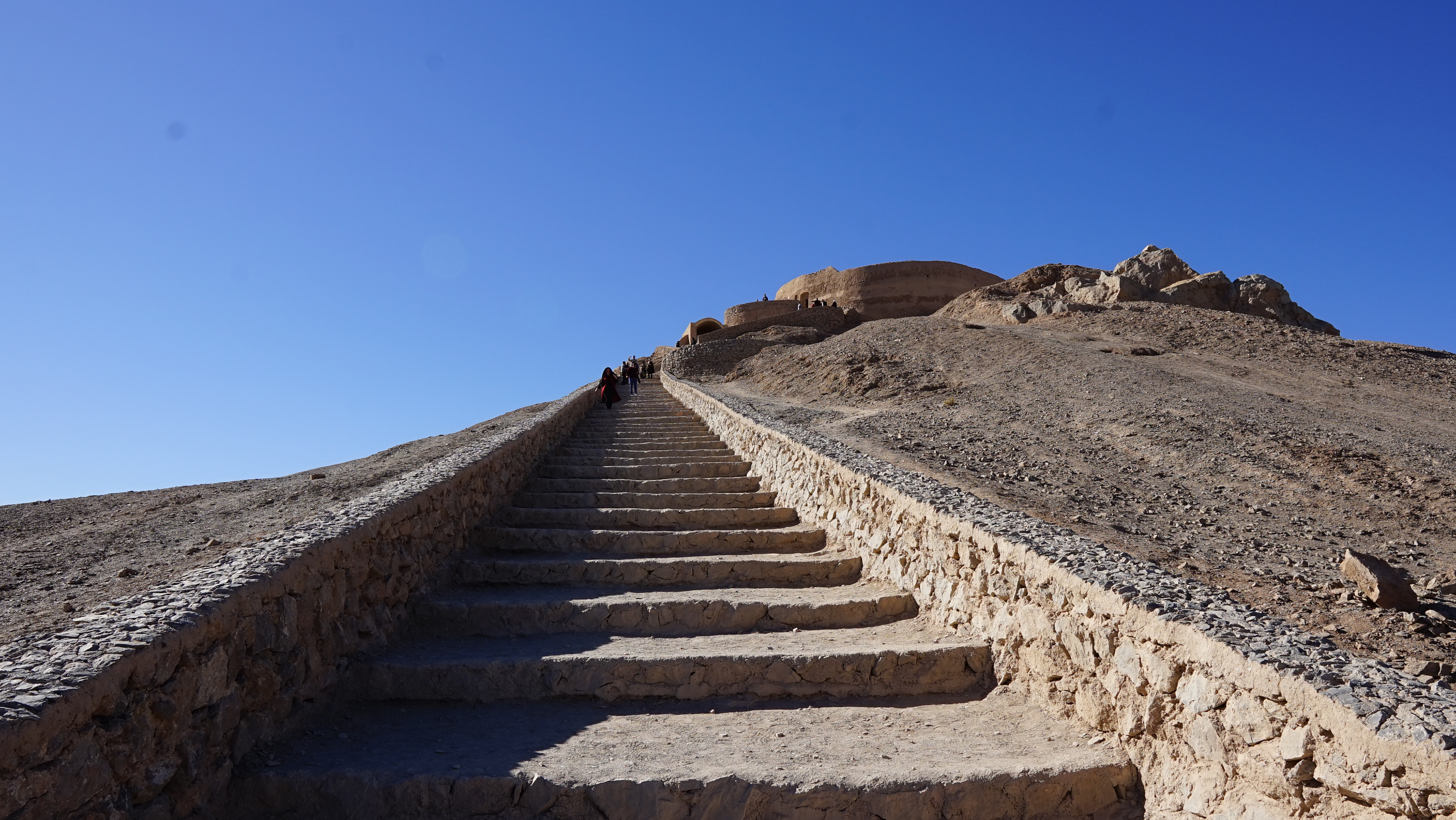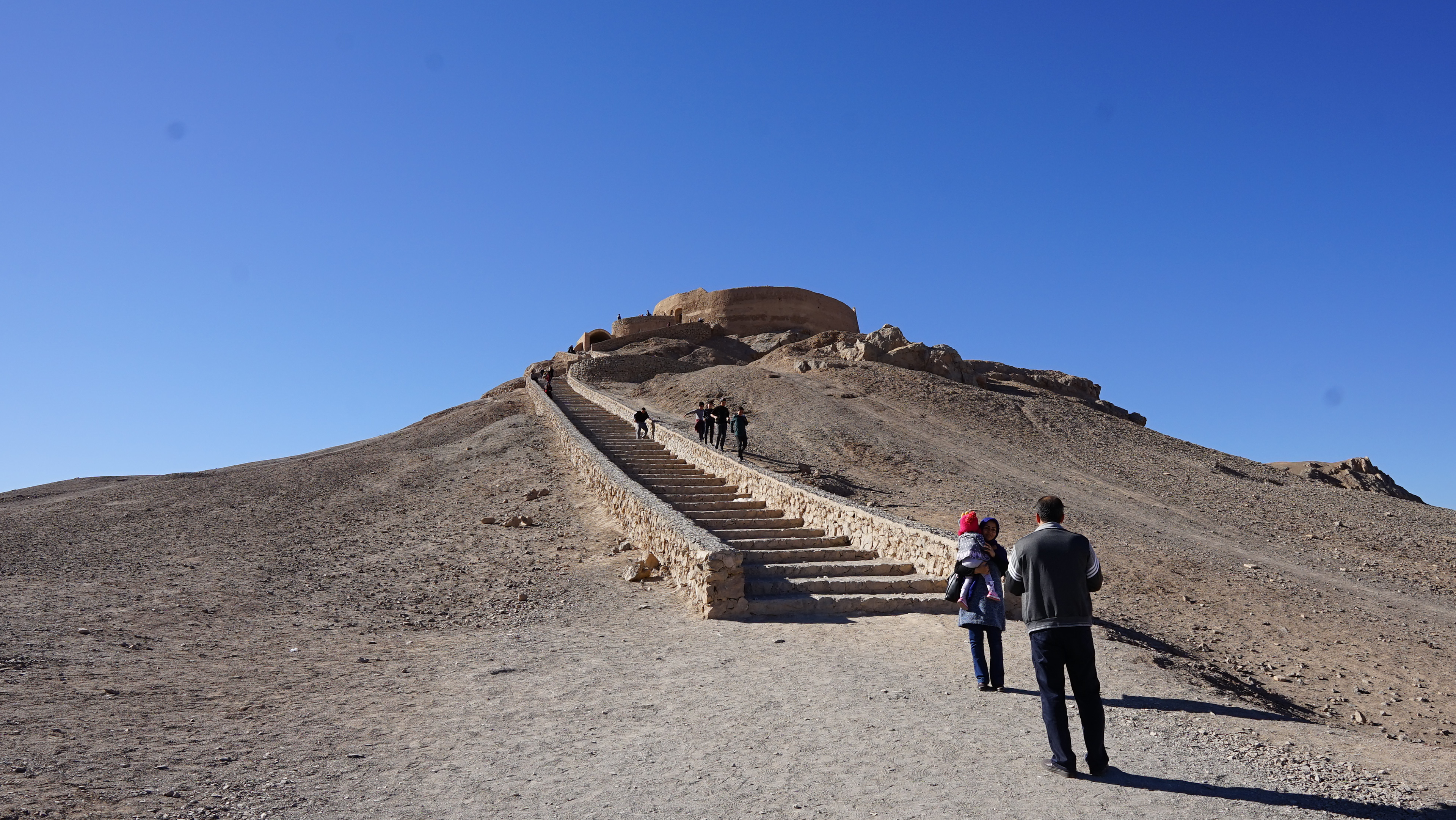 Yazd Tower of silence - Zoroastrians believe that earth, fire and water are all holy elements, and thus do not pollute them by burying, burning or giving their dead to the water. Instead, they place their dead bodies on in a tower of silence, letting vultures to consume the corpses.